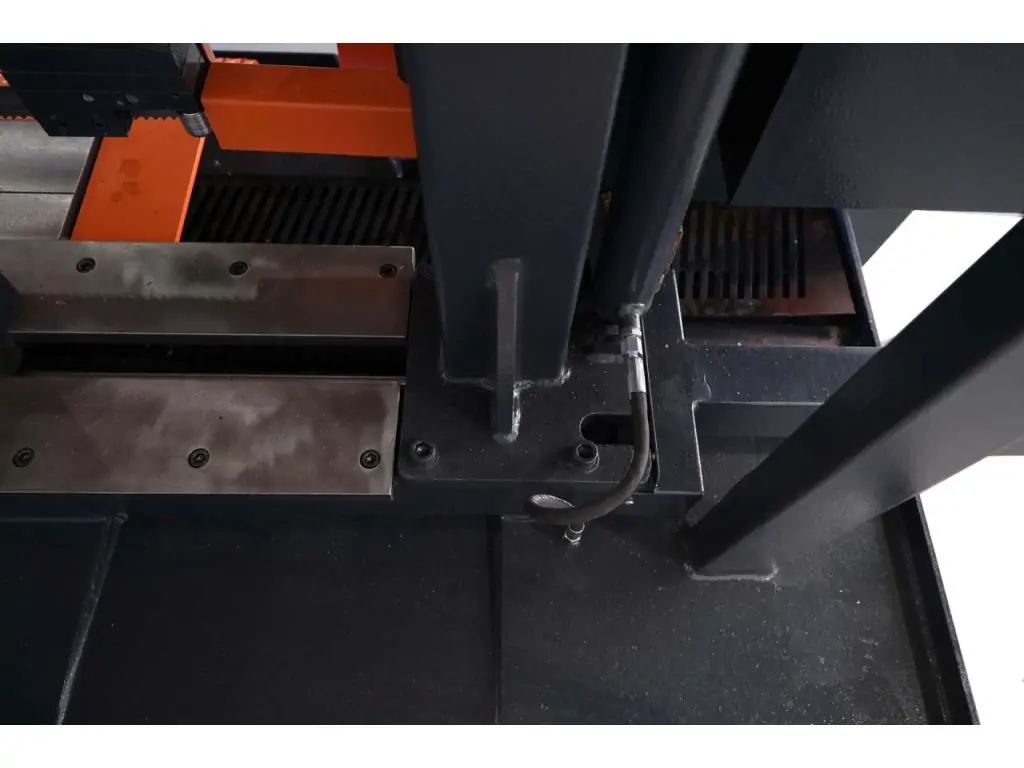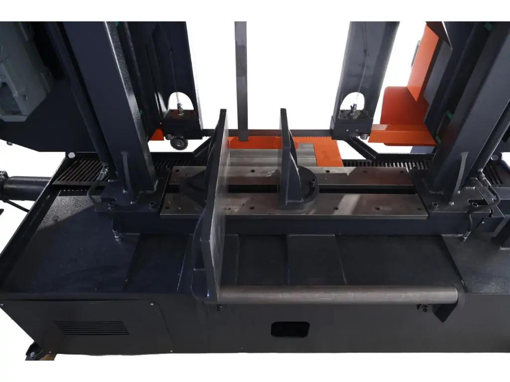 Дві колони створюють жорстку замкнуту конструкцію, рівномірно розподіляють навантаження під час різання, зменшують вібрації та запобігають перекосу пильної рами. Це забезпечує вертикальну стабільність, виключаючи вібрації, що дозволяє різати метал з високою точністю на всьому перерізі.