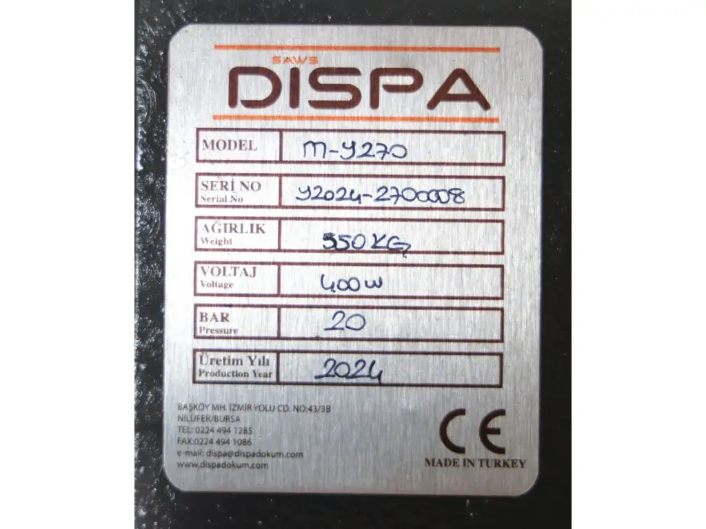 - Напівавтоматична стрічкова пила Dispa Makina M-Y 270