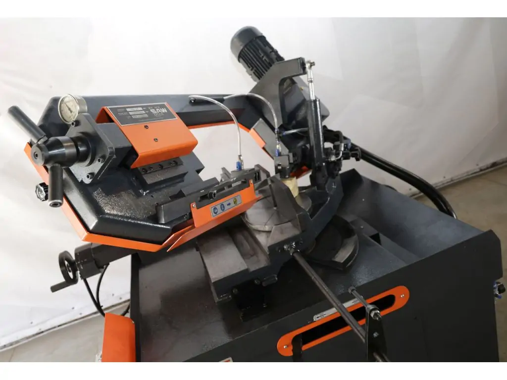 Двигун потужністю 1,3 кВт, діапазон різання від -45° до +60° і плавне регулювання швидкості від 0 до 90 м/хв дають змогу якісно і продуктивно працювати з різними видами металу. Завдяки сучасній системі охолодження відсутній ризик перегріву, а міцна і жорстка станина з чавуну поглинає вібрації і забезпечує стабільну роботу. Регульовані автоматичні лещата надійно фіксують заготовку на столі, що дає змогу досягти найвищої точності виконання завдань.