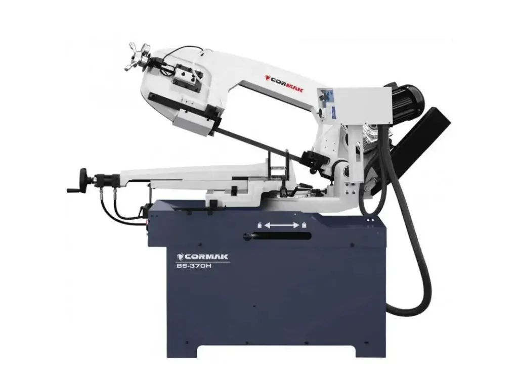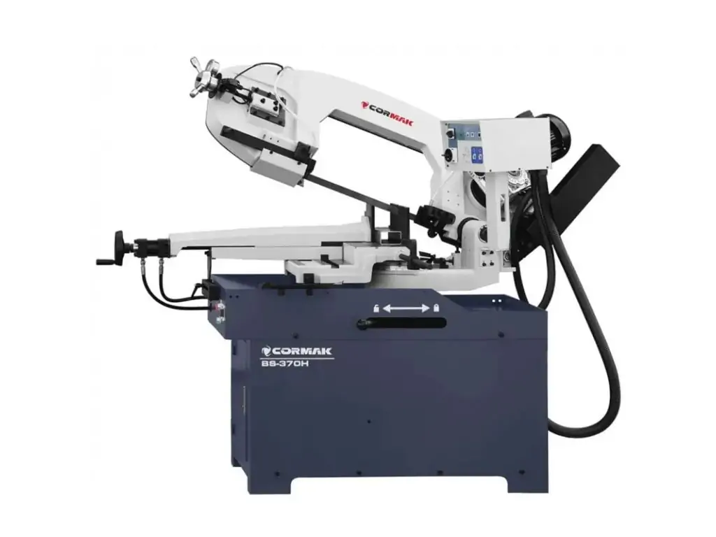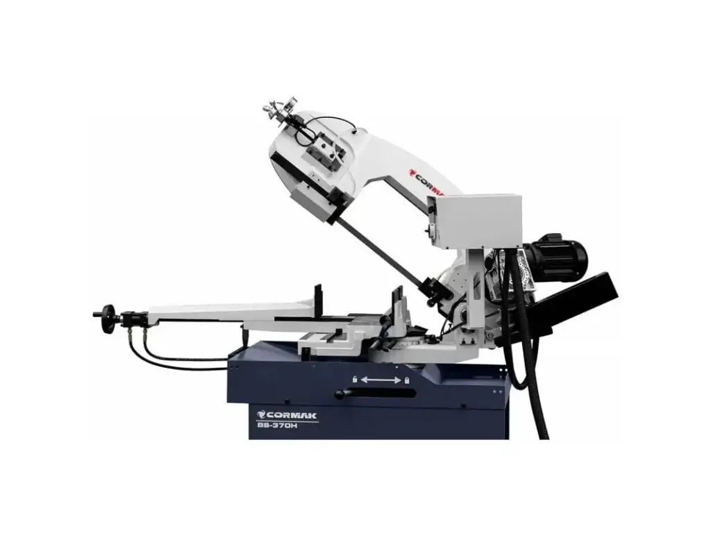 Напівавтоматична стрічкова пила CORMAK BS370H - потужна та надійна напівавтоматична стрічкова пила з можливістю різання під кутами від -45° до +60°. Оснащена гідравлічними лещатами та зручною рукояткою, ця пила є незамінним інструментом у будь-якій слюсарній майстерні. Вона ідеально підходить для обробки труб, профілів та твердих матеріалів. Стрічкові напрямні мають спеціальні твердосплавні пластини і підшипники, що значно підвищує точність різання, термін служби стрічки і зменшує знос обладнання.