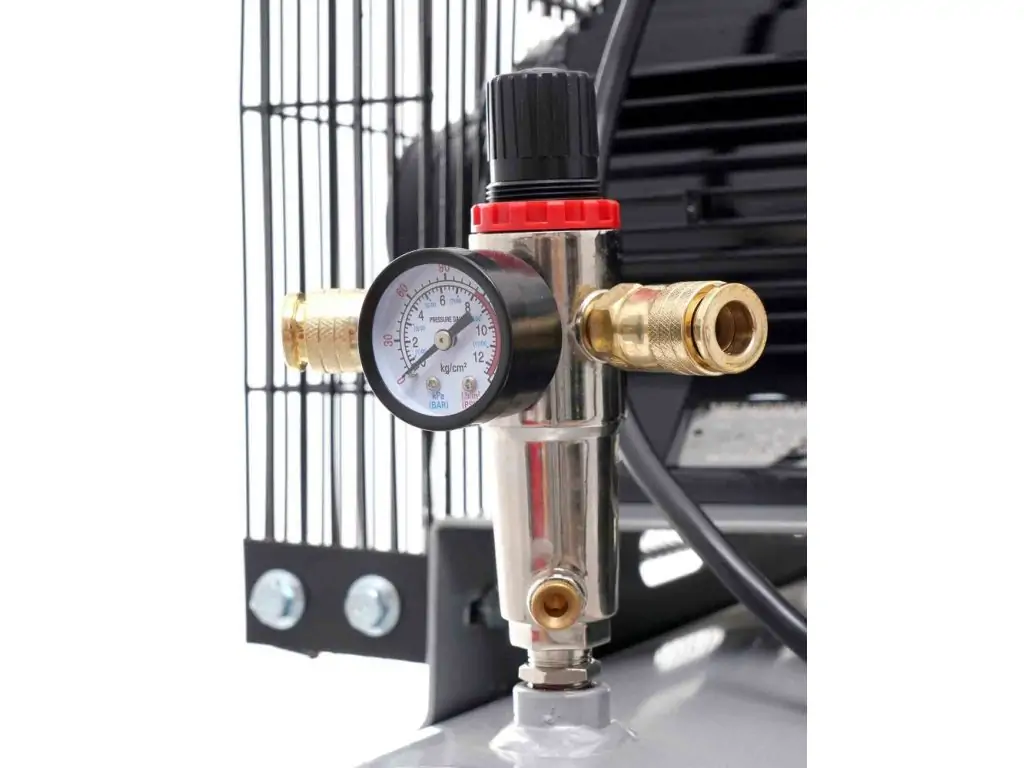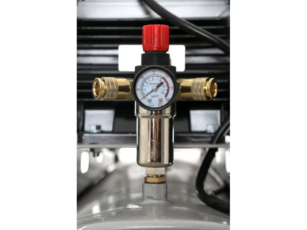Невелика вага компресора робить його дуже ергономічним, він також має автоматичну систему змащення, фільтрацію повітря, редуктор тиску та транспортні колеса.
