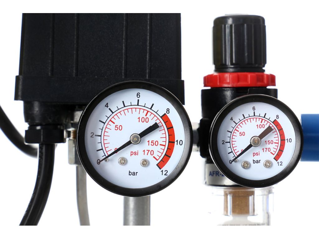 Компресор оснащений водороздільником, який утримує воду і мастило у відпрацьованому повітрі, редуктором тиску з інноваційним механізмом регулювання, двома манометрами для контролю параметрів роботи, двома декомпресійними клапанами для полегшення пуску і зручним краном для зливу конденсату. Ще однією вагомою перевагою є низьке енергоспоживання при збереженні високих робочих характеристик. Для зручності транспортування компресора є колеса і металева ручка з прогумованим покриттям. Такий компресор замовити в Україні ви можете на сайті офіційного постачальника TAGRED KMA.UA.