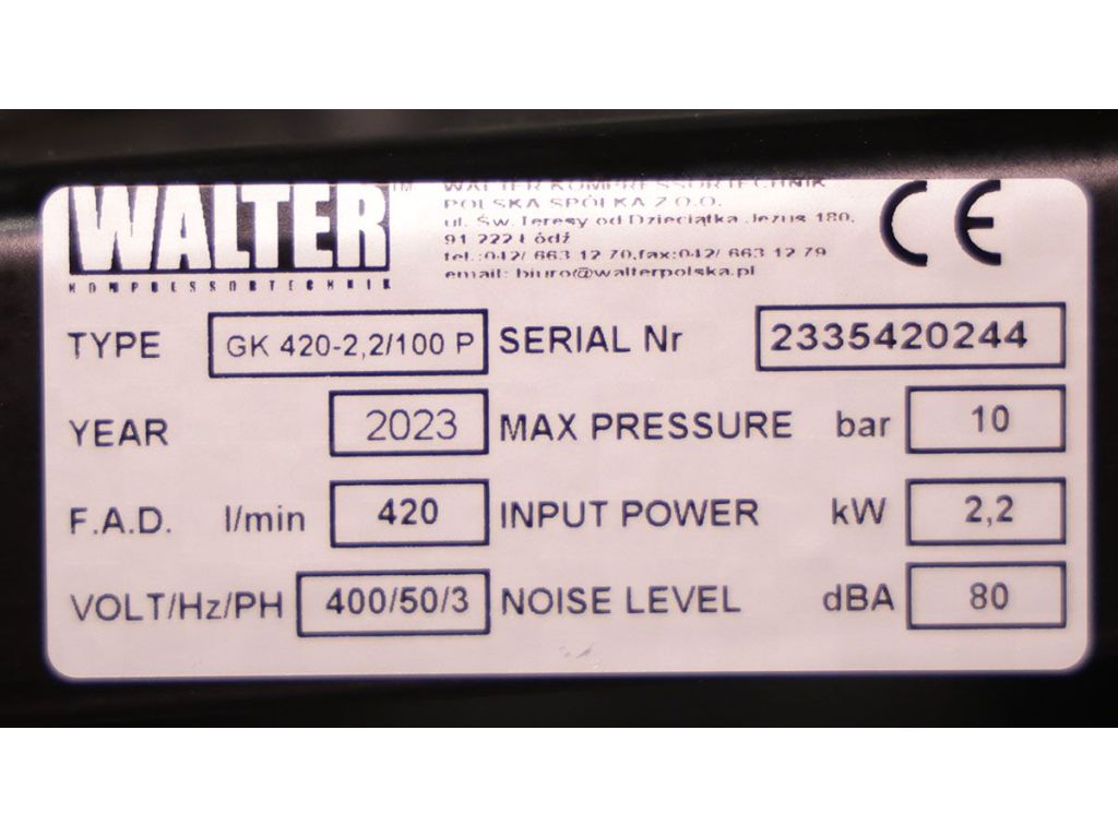 В обладнанні польського виробника WALTER використовуються лише найкращі європейські компоненти, що у поєднанні з якісною заводською збіркою гарантує його тривалу та ефективну службу. Замовити WALTER GK 420-2,2/100 P можна через онлайн магазин компресорів KMA.UA.