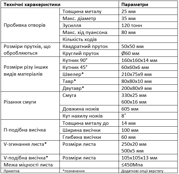 Станція різання складається із різання квадратного прутка, круглого прутка, кутника (як під 90°, так і під 45°) та гільйотини.