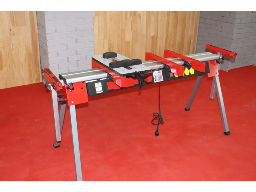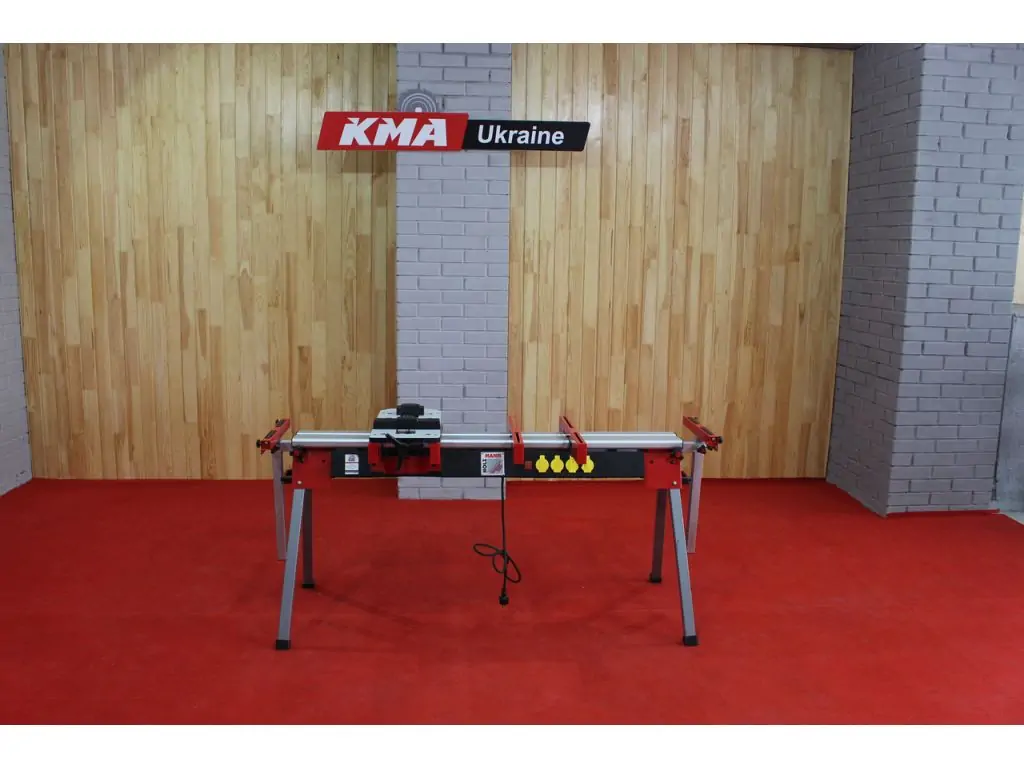 В комплект поставки входить затискний стіл, завдяки якому можна легко зафіксувати заготовки різного розміру і типу. Висувні роликові стійки зі шкалою забезпечують підтримку довгих матеріалів для їх якісної обробки. Конструкція виготовлена з якісного металу з антикорозійним покриттям і може складатися, тому ця підставка для інструменту надійна, довговічна і зручна у використанні та зберіганні.