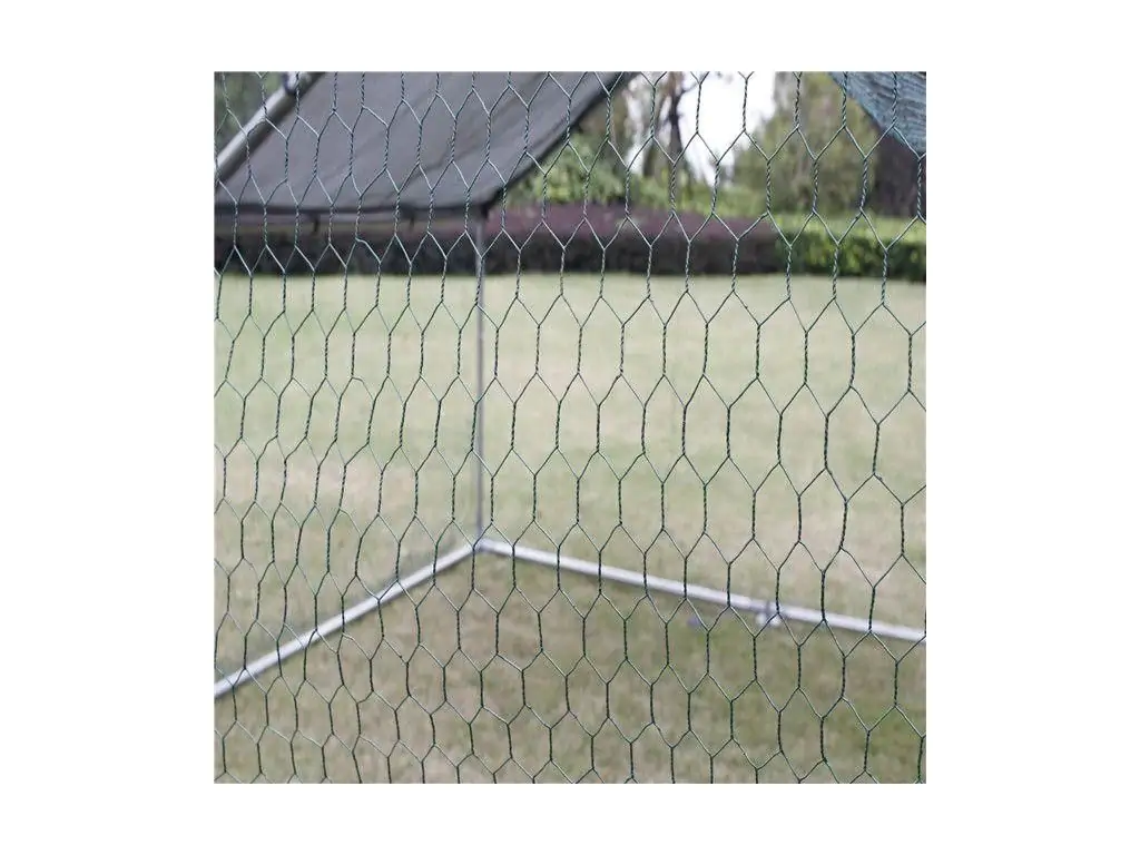Міцний каркас з оцинкованої труби і сітки з ПВХ-покриттям легко та швидко встановлюється і так же просто демонтується. Сітка стійка до розриву і має отвори всього 25х45 мм, що запобігає втечі птахів і сприяє їх безпеці. Унікальне водонепроникне та стійке до ультрафіолету накриття Tarpaulin надійно захищає птахів від сонця, дощу і граду. Конструкція має зручні вхідні двері для догляду за пернатими.