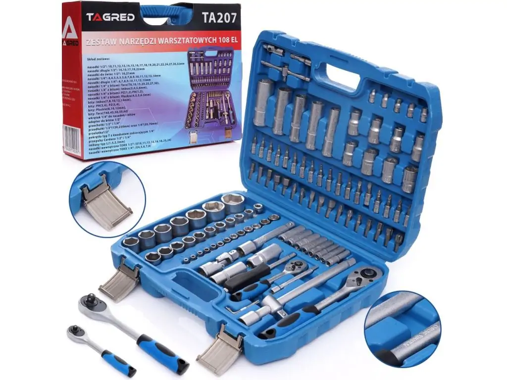 У комплект входить аж 108 фірмових інструментів. Інструменти виготовлені з високоякісних матеріалів. Дуже потужний комплект дозволяє виконувати більшість робіт по ремонту. Завдяки своїй універсальності підходить для будь-технічної галузі. Це саме та річ, яка точно знайде своє призначення в кожному гаражі, домашній майстерні, на фермі чи на дачі.