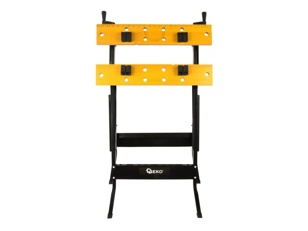 Верстак GEKO G10871 призначений для широкого використання на промислових підприємствах, у майстернях та навчальних закладах. Конструкція столу дозволяє регулювати положення стільниці та її ширину відповідно до форми предмета, який ви хочете на ній розмістити. Крім того, стільниця укомплектована затискними губками, які дозволяють кріпити на столі предмети різної форми. Регулювання столу здійснюється за допомогою ручок, розташованих на його правій і лівій стороні.