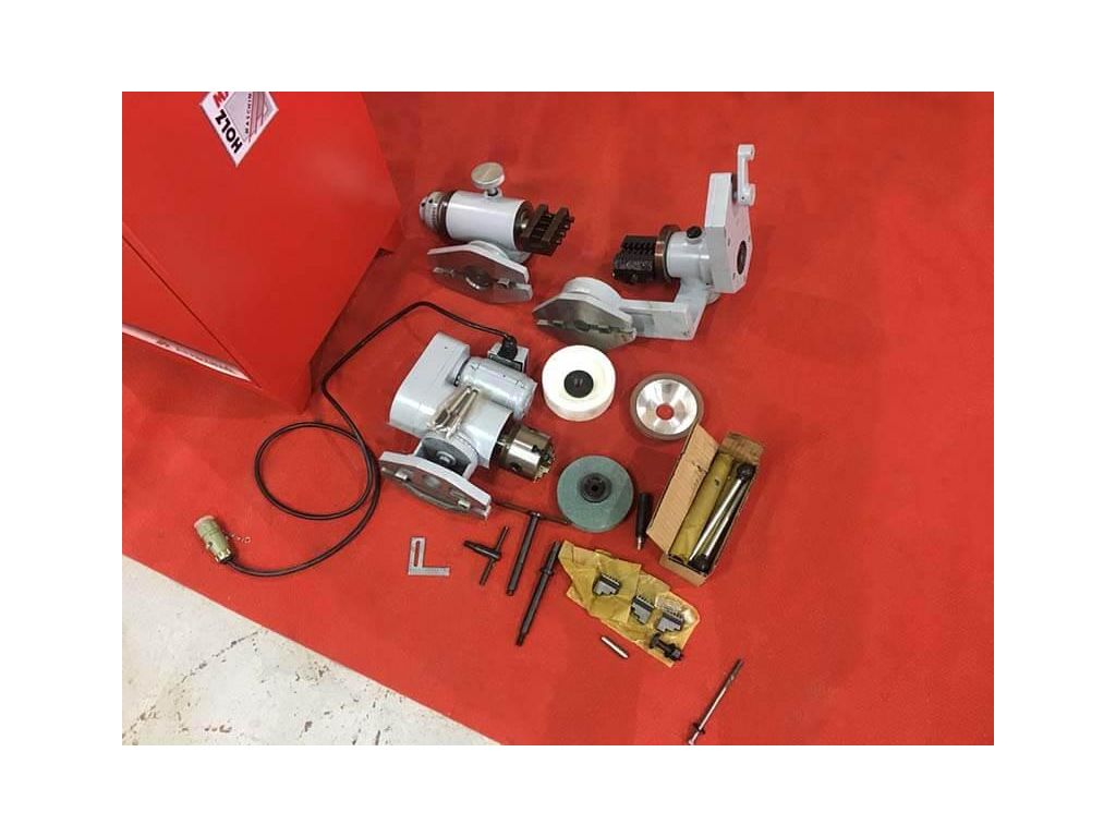 Комплект поставки: Опорна рама, задня бабка справа і зліва, пружинний упор, регульовані упори столу, пристрій для заточування гвинтових свердел, приводний вузол з 3-кулачковим патроном 80 мм, стандартний центр 60 °, зрізаний центр 60 °, 1 чашковий шліфувальний круг і 1 алмазний чашковий круг (125 x 35 x 32 мм), 1 заточной коло прямого профілю і 1 тарілчастий коло (125 x 15 x 32 мм), тримач токарного різця, затискна оправлення для фрези 16, 22, 32 мм, інструмент для технічного обслуговування.