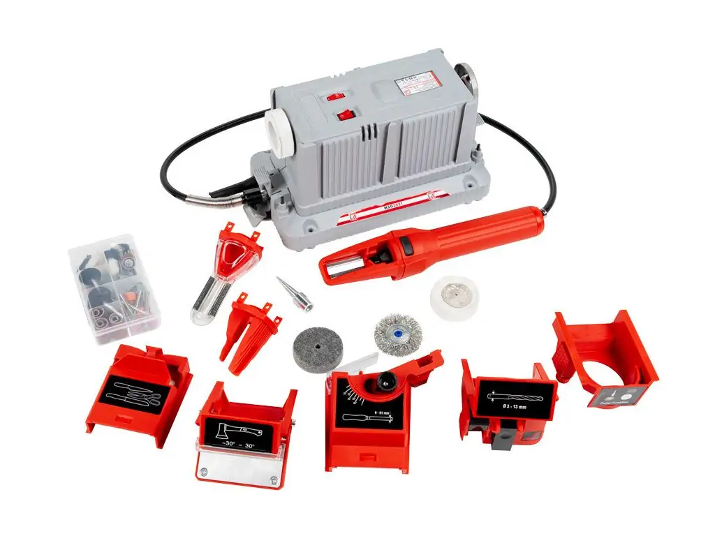Це пристрій для заточування різних типів інструменту, який має змінні насадки або регульовані напрямні для адаптації до різних лез.