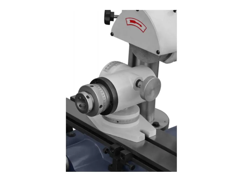 Двоосьовий координатний стіл, який переміщується по високоточних шліфованих напрямних, забезпечує точне позиціонування інструменту. Маховики з мікрометричними шкалами дозволяють контролювати глибину знімання металу з точністю до 0,02 мм. Для встановлення додаткового оснащення є Т-подібний паз в центрі столу. Для фіксації інструменту перед обробкою використовуються регульовані механічні упори. В стандартну комплектацію входять привідний блок з 3-кулачковим патроном для циліндричного шліфування та широкий спектр іншого оснащення, що робить цей професійний точильний верстат надзвичайно універсальним.