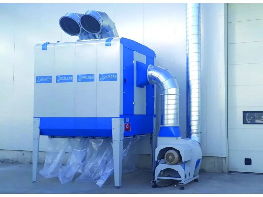 Кожна секція має два поліетиленових мішки для збору відходів, та 18 рукавних фільтрів розміром D160х1680 мм.