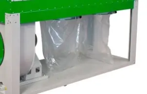 Пил і відходи від деревини збираються в поліетиленові прозорі мішки, які герметично закріплені металевими хомутами на корпусі аспіраційної установки.