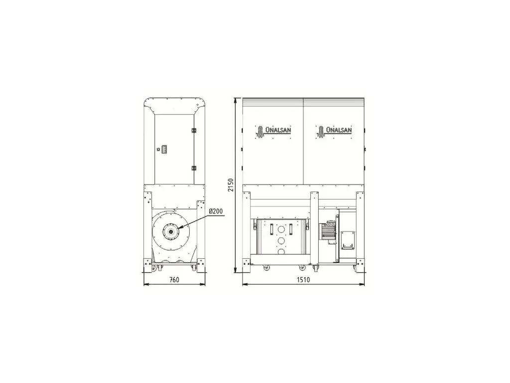 Пил і відходи від деревини збираються в викатні металеві бункери, які також встановлені на поворотних пластикових колесах, для зручності їх подальшого спорожнення. На кожному бункері є великі оглядові вікна для візуального контролю їх наповнення.