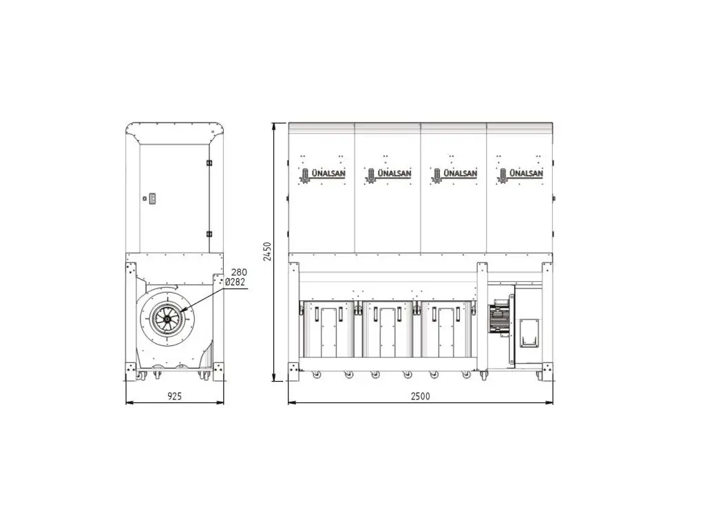 Корпус аспіраційної установки повністю закритий металевим кожухом, де всі стики листового металу герметизовані силіконом. Це дозволяє використовувати установку не тільки всередині цеху, але і на вулиці. При установці ззовні, аспірація у верхній частині кожуху має технологічні отвори для підключення повітроводів, для повернення відфільтрованого теплового повітря назад у виробничий цех.
