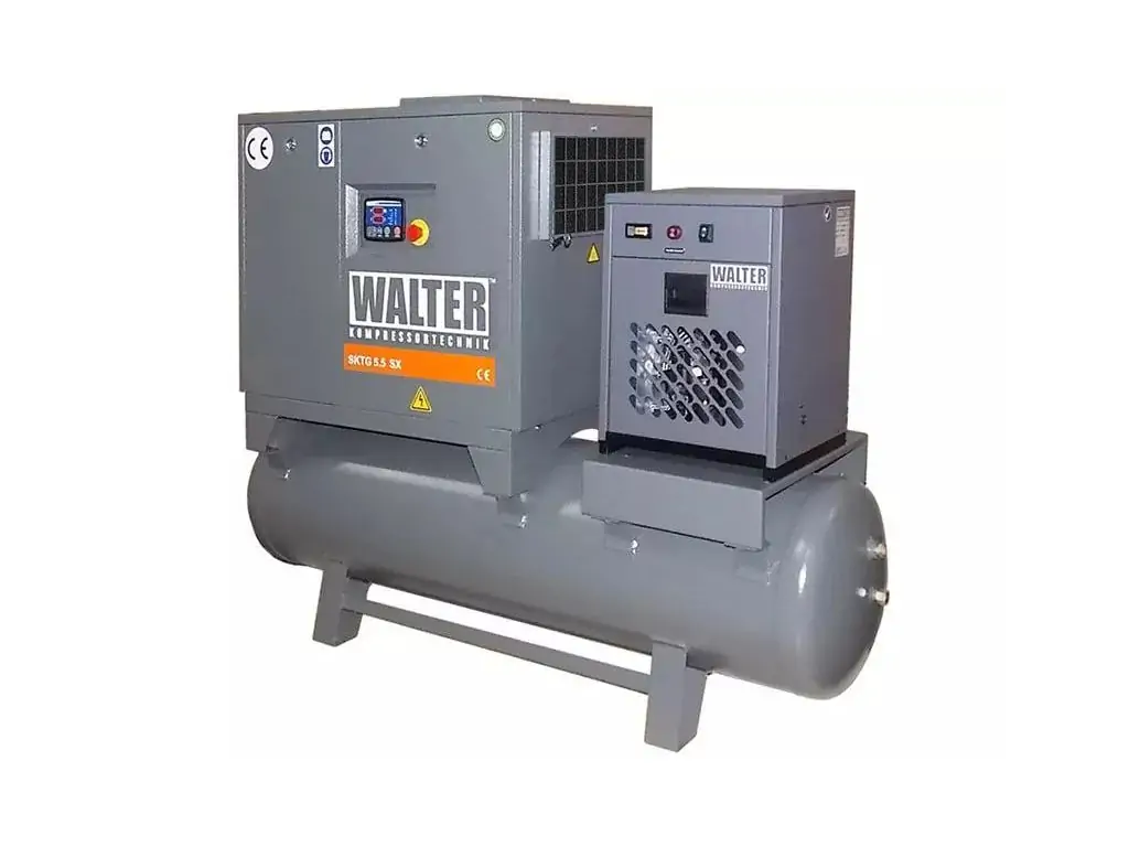 Гвинтовий компресор з ремінним приводом WALTER SKTG 5,5/500 SXP COMBO - незамінний пристрій для будь-яких робіт з стисненим повітрям. Потужний і міцний компресор призначений для професійного та промислового застосування.