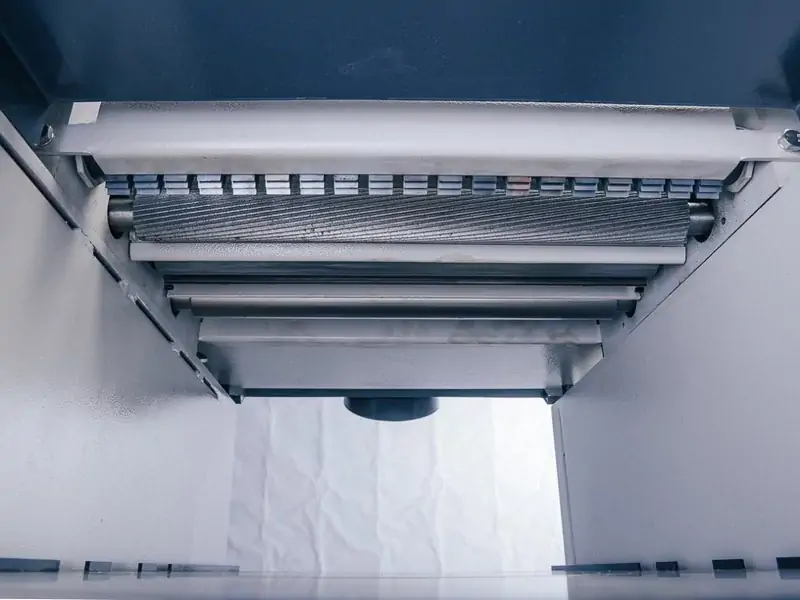 Вхідний валець зазвичай має рифлену поверхню та/або косі насічки, завдяки яким захоплює заготовку і рівномірно тягне її через ножовий вал. Це запобігає ковзанню та забезпечує однакову товщину деталі по всій довжині. Вихідний вал зазвичай гладкий, що дозволяє не залишати сліди на вже обробленій заготовці.