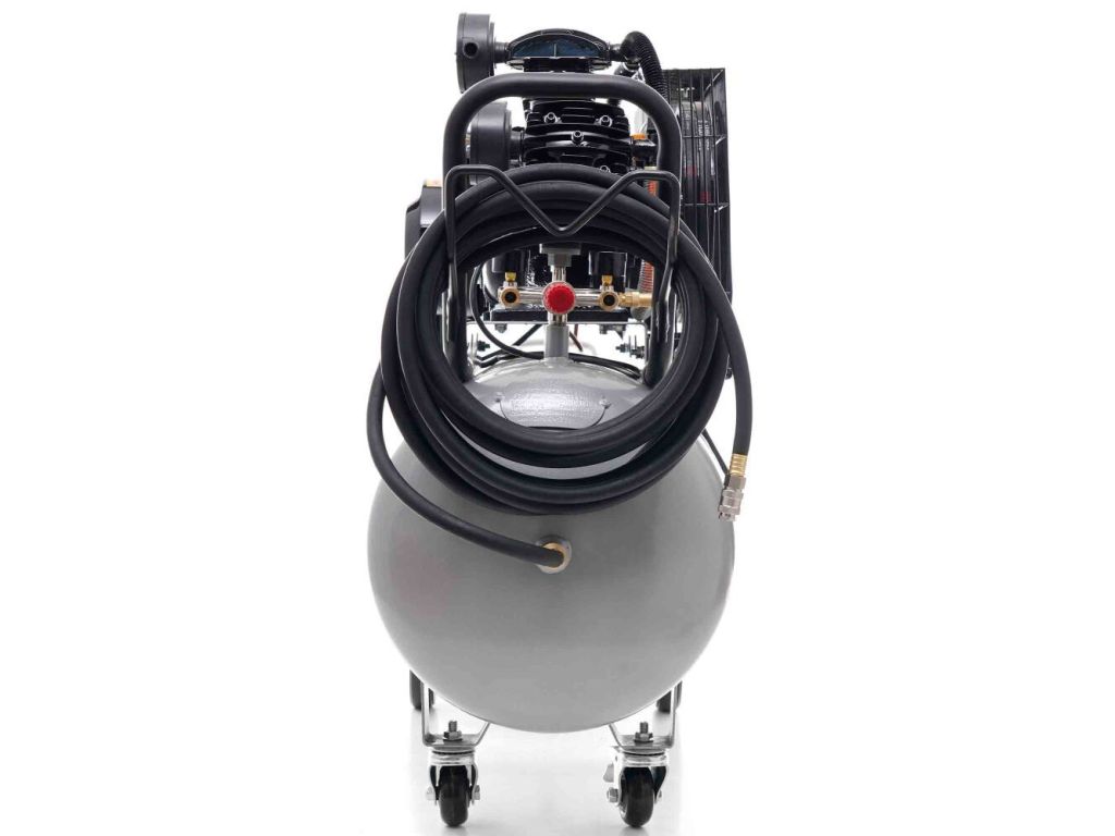Небольшой вес компрессора делает его очень эргономичным, он также имеет автоматическую систему смазки, фильтрацию воздуха, редуктор давления и транспортные колеса.