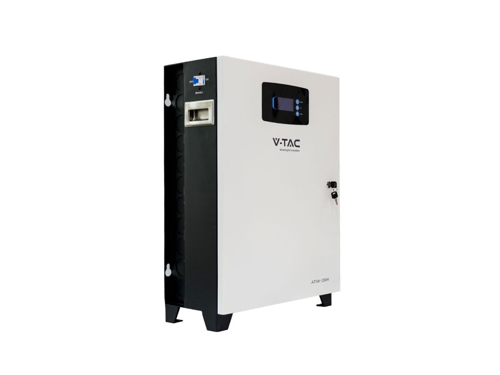 LiFePO4 энергонакопитель V-TAC для фотоэлектрических инверторов способен хранить электроэнергию до максимальной мощности 10,24 кВт-ч. Он имеет длительный срок службы, способен осуществлять более 5000 циклов зарядки/разрядки. Модель оснащена кронштейнами для настенного крепления и фронтальным светодиодным дисплеем, позволяющим быстро контролировать параметры и состояние батареи.