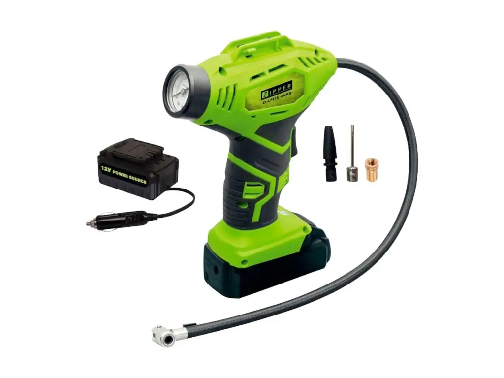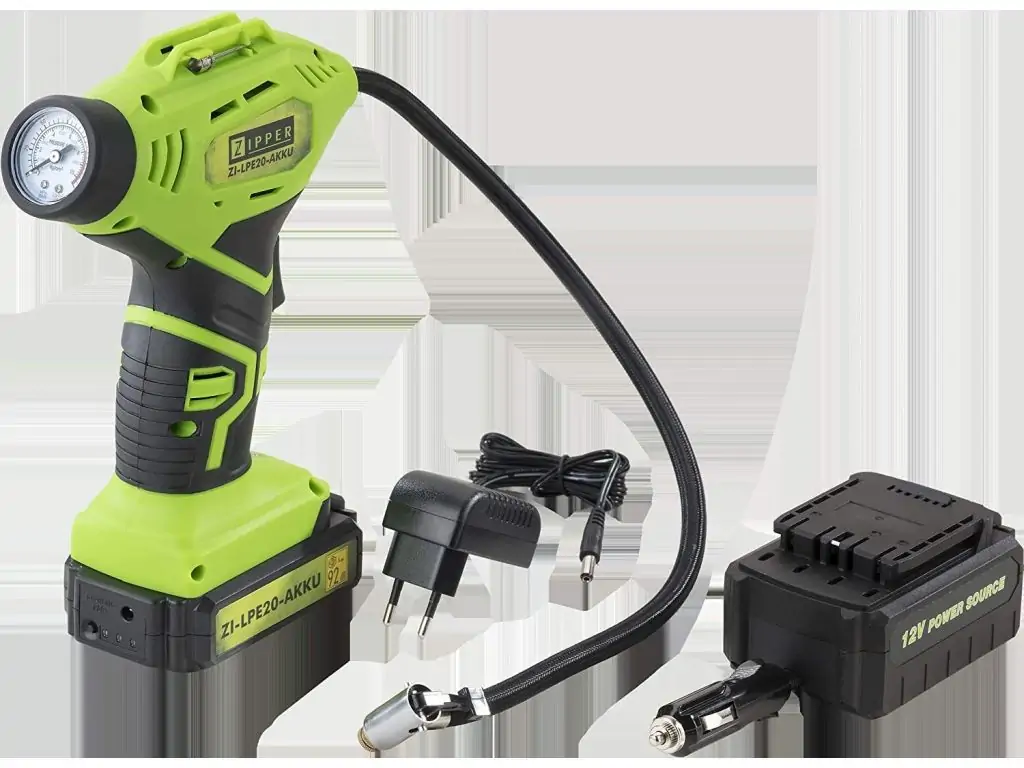 Аккумуляторный насос-компрессор Zipper ZI-LPE20-AKKU – это портативное устройство для накачки автомобильных и велосипедных шин, надувных матрасов, мячей и других надувных изделий. Работает от аккумулятора 18 В емкостью 1,3 Ач. Также есть адаптер 12 В для подключения к прикуривателю через шланг длиной 2,8 м.