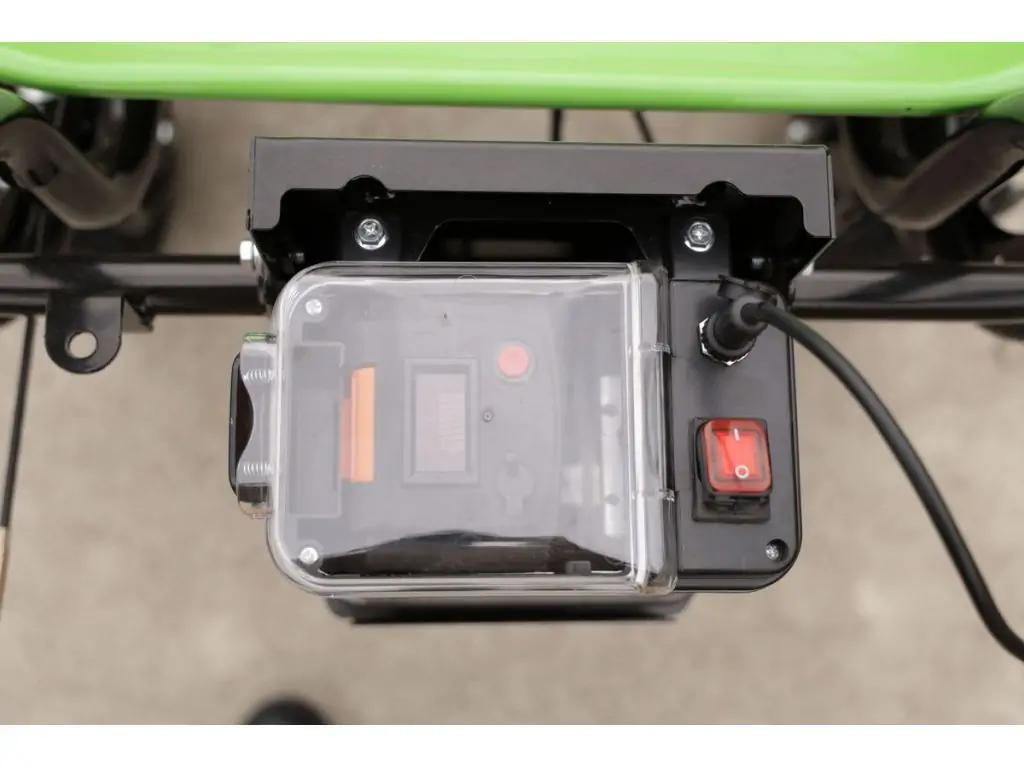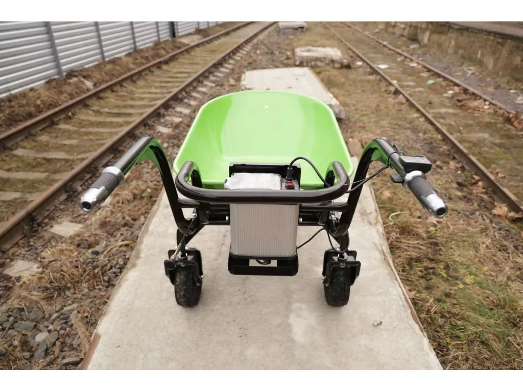 На ведущем колесе есть электропривод, питающийся от аккумулятора и обеспечивающий движение тачки без физической помощи пользователя.