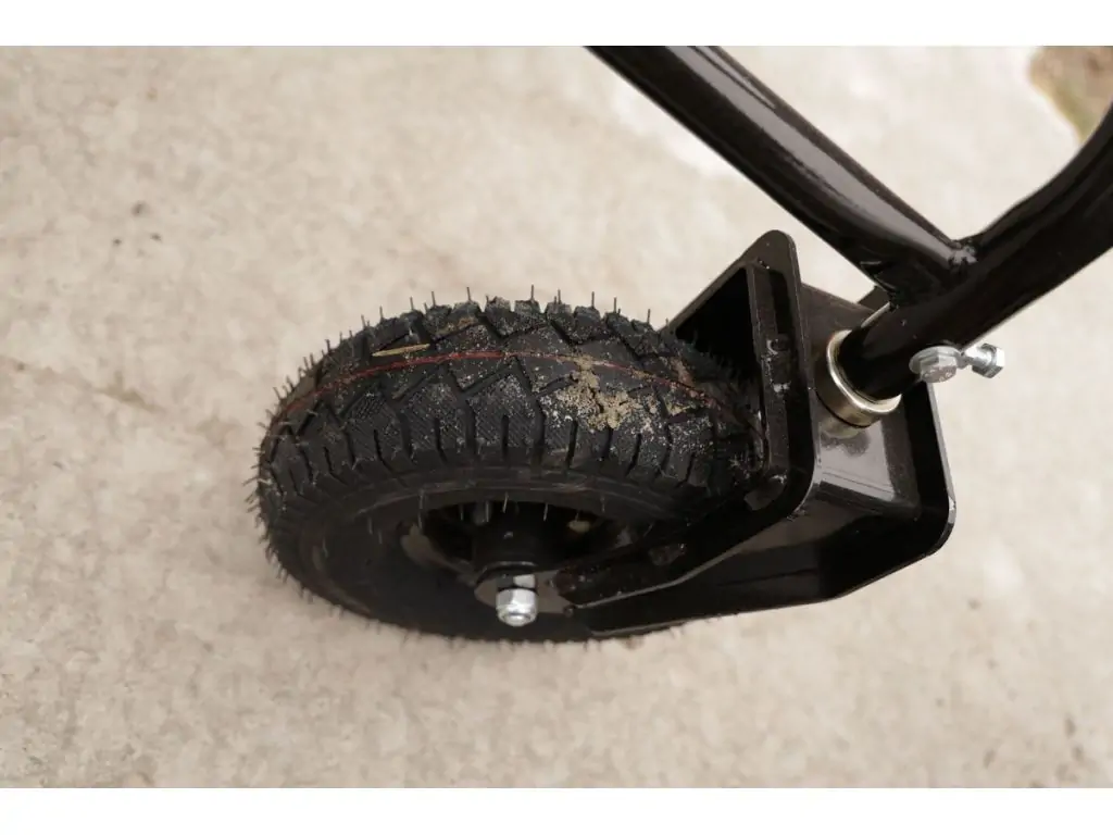 - Два опорных колеса с протектором предотвращают опрокидывание тачки и облегчают управление ею