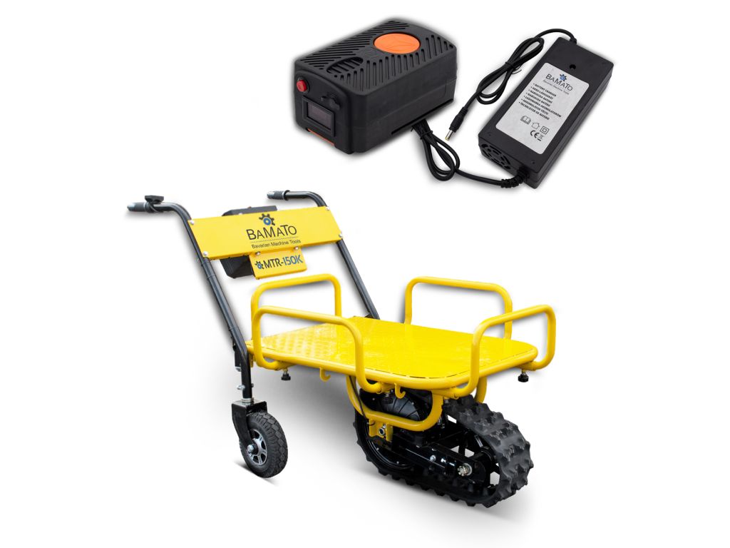 Электрическая тачка MTR-150K на гусеничном ходу с литий-ионным аккумулятором от BAMATO - это революционное и универсальное транспортное устройство, которое окажет вам эффективную помощь при перемещении тяжелых грузов и в сложных условиях местности.