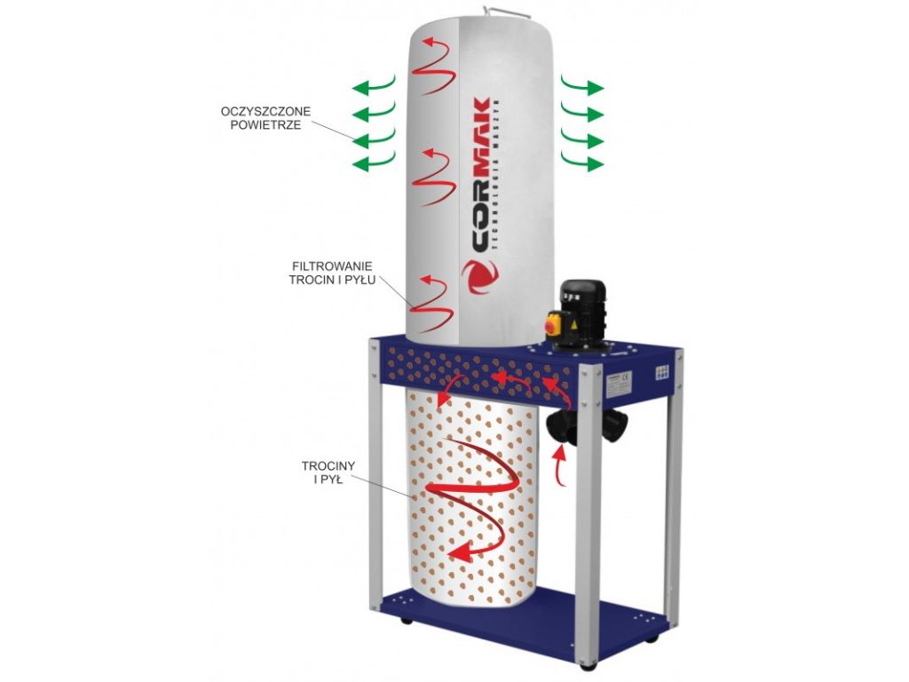Вакуумная тяга воздуха отлично всасывает излишки опилок, образующихся во время работы станка, которые образуются при механической обработке древесины. патрубок под вытяжку поворачивается на 180 °.