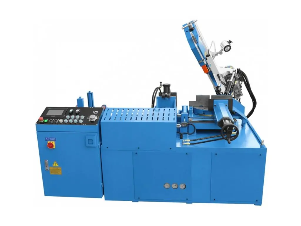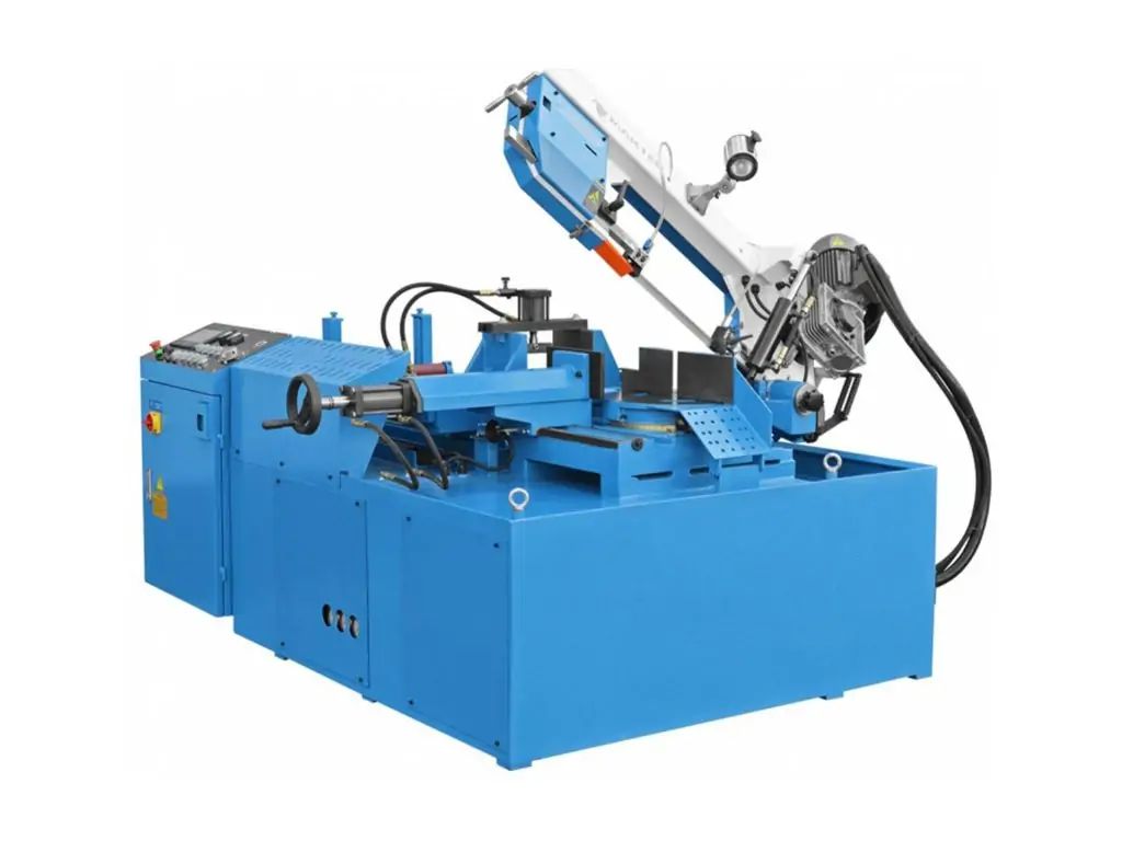 Консоль станка изготовлена из литого чугуна. Привод режущего полотна основан на двигателе, управляемом инвертором, что обеспечивает плавную регулировку в большом диапазоне скоростей. Гидравлическое натяжение полотна обеспечивает получение оптимальных условий работы ленты. В случае поломки полотна станок останавливается автоматически. Точное ведение полотна обеспечивают направляющие, состоящие из подшипников, направляющих и вкладышей из твердых сплавов. Максимальные параметры резки и длительный срок службы полотна обеспечивает система СОЖ и щетка для чистки.
