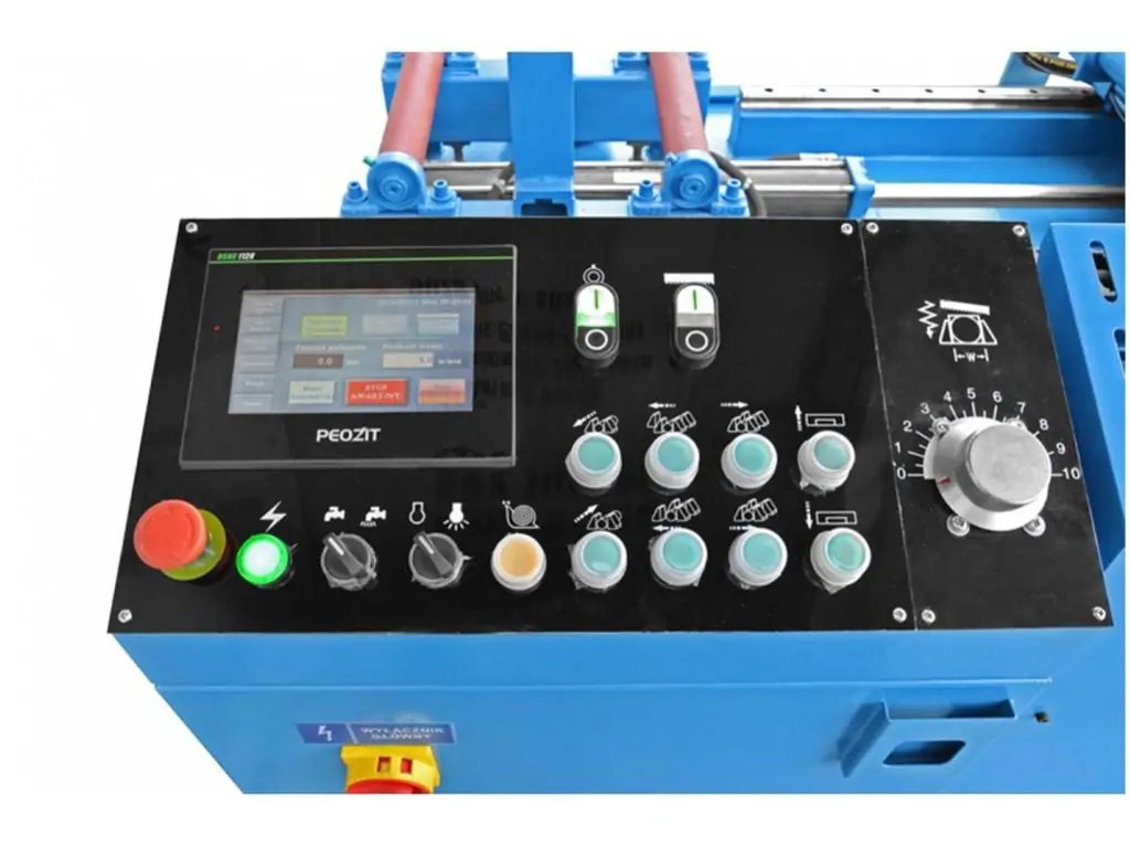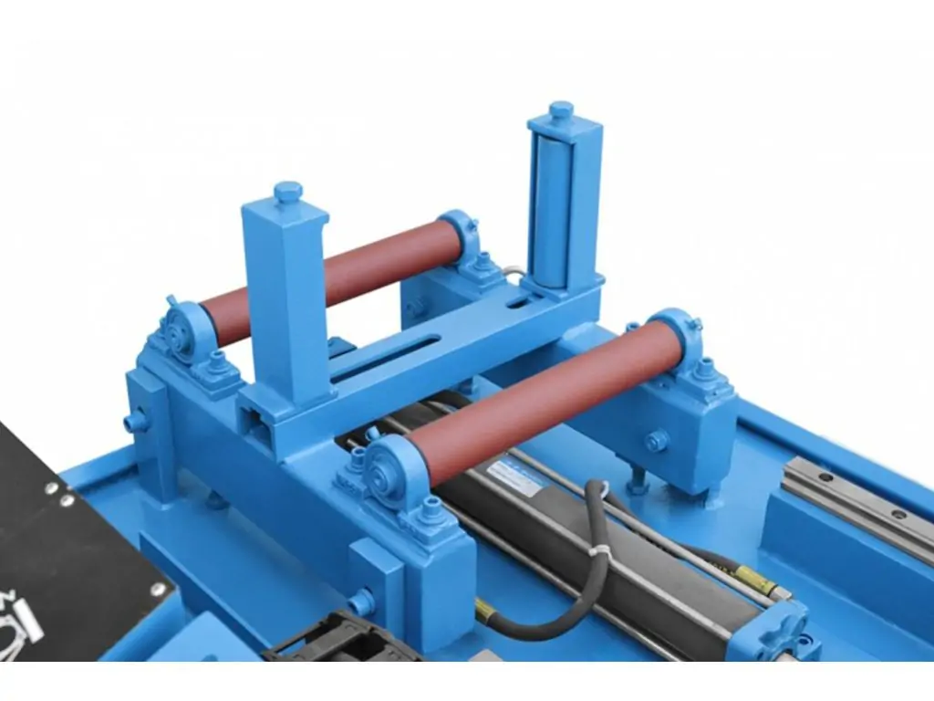 Гидравлическая система подачи материала обеспечивает полностью автоматический цикл работы станка. Контроллер оснащен ЖК-дисплеем. Максимальная длина подачи материала составляет 500 мм, с точностью +/- 0,2 мм..