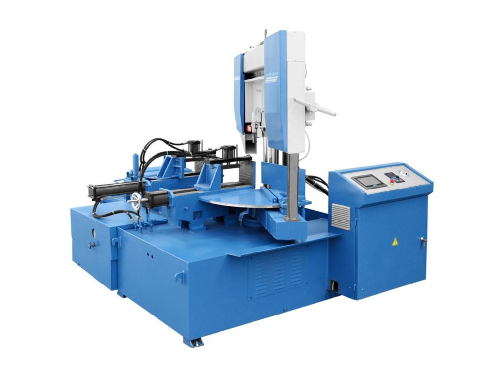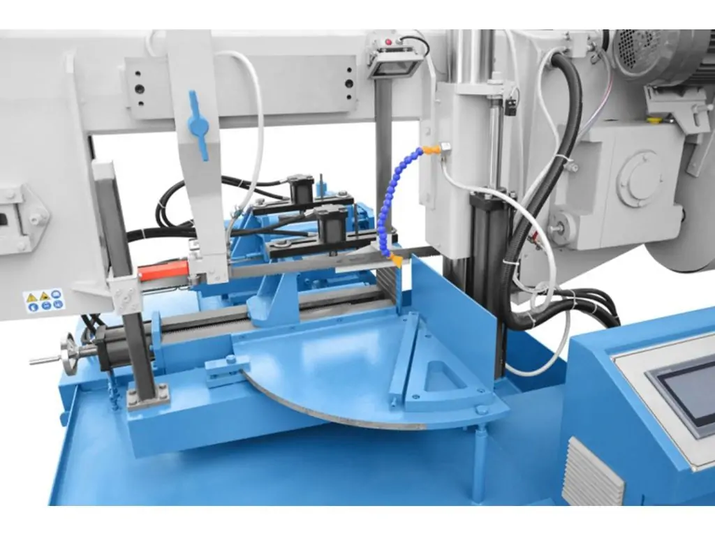 Консоль станка изготовлена из литого чугуна. Привод режущего полотна основан на двигателе, управляемом инвертором, что обеспечивает плавную регулировку в большом диапазоне скоростей. Гидравлическое натяжение полотна обеспечивает получение оптимальных условий работы ленты. В случае поломки полотна станок останавливается автоматически. Точное ведение полотна обеспечивают направляющие, состоящие из подшипников, направляющих и вкладышей из твердых сплавов. Максимальные параметры резки и длительный срок службы полотна обеспечивает система СОЖ и щетка для чистки.