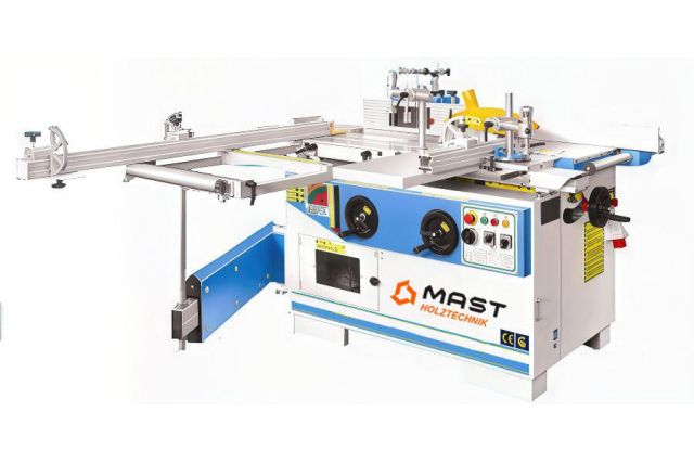 Пятиоперационный станок MAST Holztechnik K5-41 – это комбинированное деревообрабатывающее оборудование, объединяющее несколько функций в одном станке. Имеет такие узлы для столярной обработки, как фуганок, рейсмус, форматная пила и фрезер. Опционально можно установить сверлильно-долбежное устройство и подрезной узел. Фуговальный и рейсмусовый узлы работают от отдельного двигателя мощностью 3 кВт, фрезерный и пильный узлы оснащены независимыми двигателями мощностью 2,2 кВт каждый. Питание от трехфазной сети.