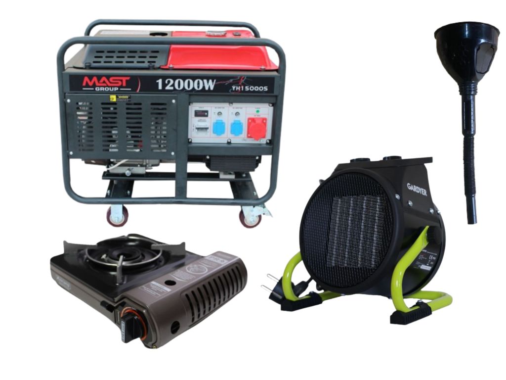 Почему стоит выбрать именно бензиновый генератор MAST GROUP YH15000S+ газовая плитка Orcamp CK-505+ электрический обогреватель Gardyer HE2000