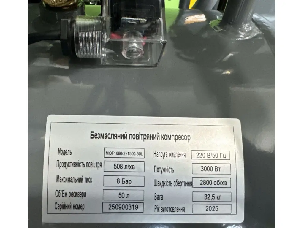 Безмасляный поршневой компрессор Mast MOF1680/2x1500-50L с двумя независимыми двигателями мощностью 1,5 кВт каждый и ресивером 50 л обеспечивает стабильную подачу сжатого воздуха без примесей масла с производительностью 508 л/мин и максимальным давлением 8 Бар. Идеально подходит для питания стоматологического и лабораторного оборудования, пищевой промышленности, покрасочных работ и аэрографии.