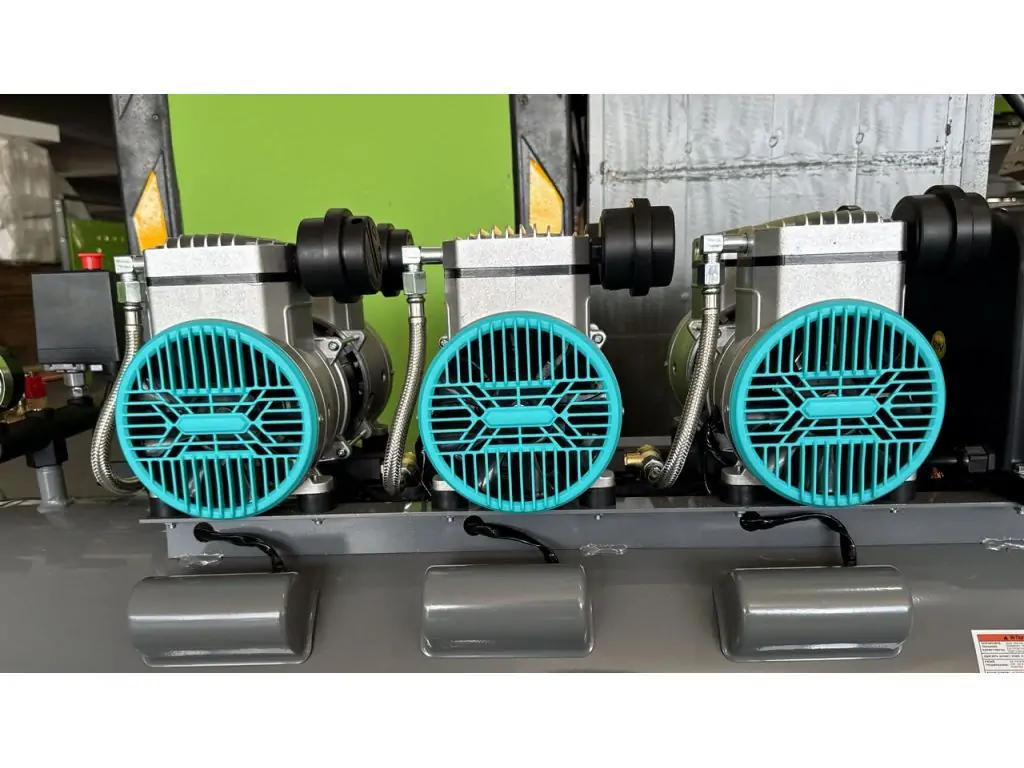 - Три независимых поршневых блока с отдельными двигателями мощностью 1,5 кВт каждый