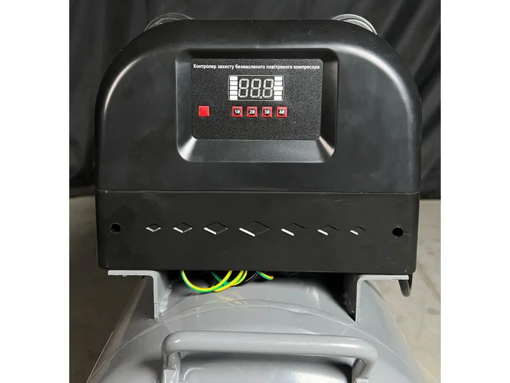 Модель оснащена модулем последовательного запуска двигателей: каждый последующий двигатель включается с задержкой 2-3 с, что уменьшает пусковые токи и нагрузку на электросеть. Так как каждый двигатель можно включить и выключить отдельно, компрессор при необходимости может работать даже от генератора малой мощности. Контроль напряжения и защита от перегрузки предотвращают повреждение компрессорной установки.