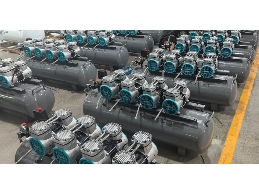 В безмасляных компрессорах нет масла, которое частично отводило бы тепло, поэтому охлаждение происходит за счет больших ребер цилиндров и интенсивного воздушного потока.
