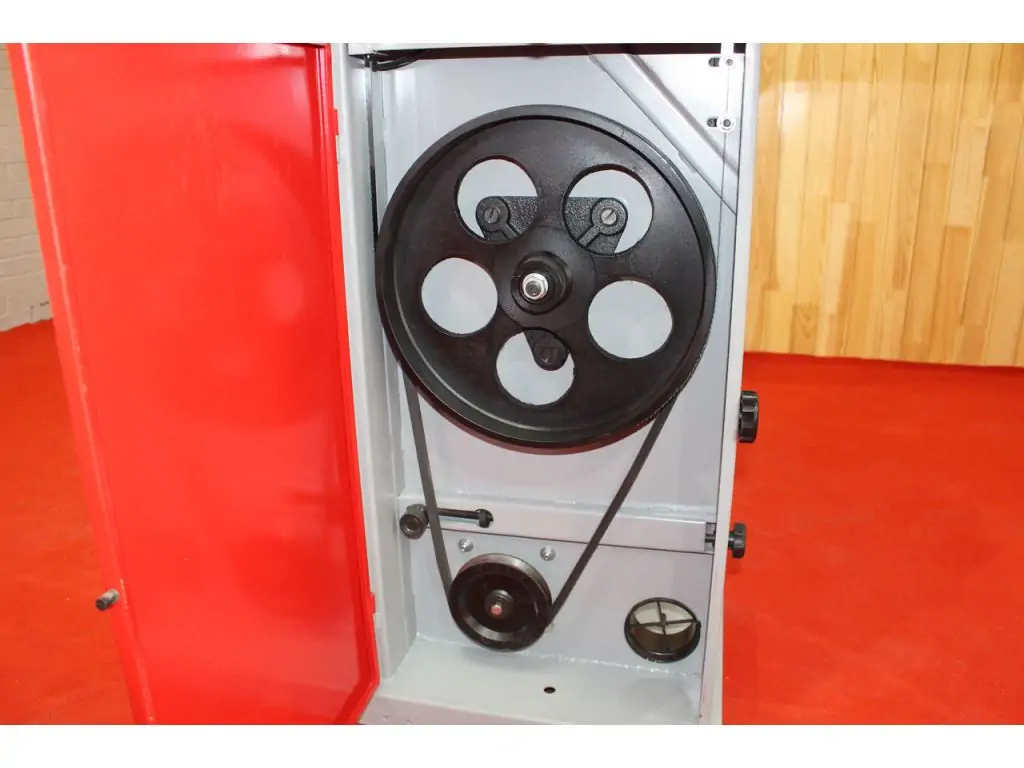 - Точная регулировка пильной ленты с помощью маховика и зубчатой рейки