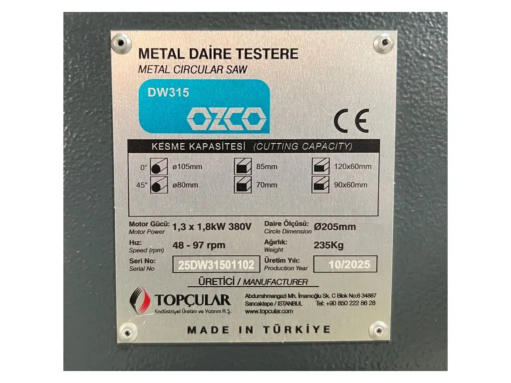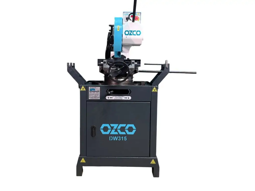 Дисковая пила по металлу OZCO DW315 – это стационарное оборудование для резки круглых и профильных труб, деталей квадратного и прямоугольного сечения, уголков, швеллеров, полос и другого металлопроката. Максимальная режущая способность для круглого сечения составляет 105 мм, для квадрата/прямоугольника – 85х85 мм/120х70 мм. Возможность угловой резки реализована за счет поворотной от -45° до +45° головы. Двойные тиски с ходом 0-120 мм обеспечивают надежный зажим заготовок разной формы и размера.
