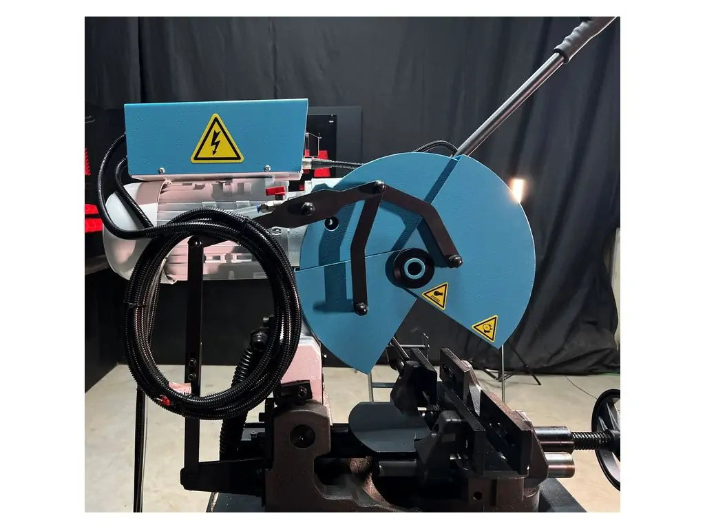Двухскоростной двигатель мощностью 1,3 кВт/ 1,8 кВт и усиленный редуктор обеспечивают стабильность резки и высокий крутящий момент на низких скоростях, что позволяет эффективно резать твердые и сплошные заготовки. Низкие обороты диска и система охлаждения СОЖ предотвращают перегрев кромки и изменение свойств металла. Для серийной резки деталей одинаковой длины есть длинный упор. Для безопасности эксплуатации эта металлорежущая дисковая пила оснащена подвижным защитным кожухом диска, а ее жесткая, массивная станина обеспечивает точность резки и более длительный ресурс узлов.