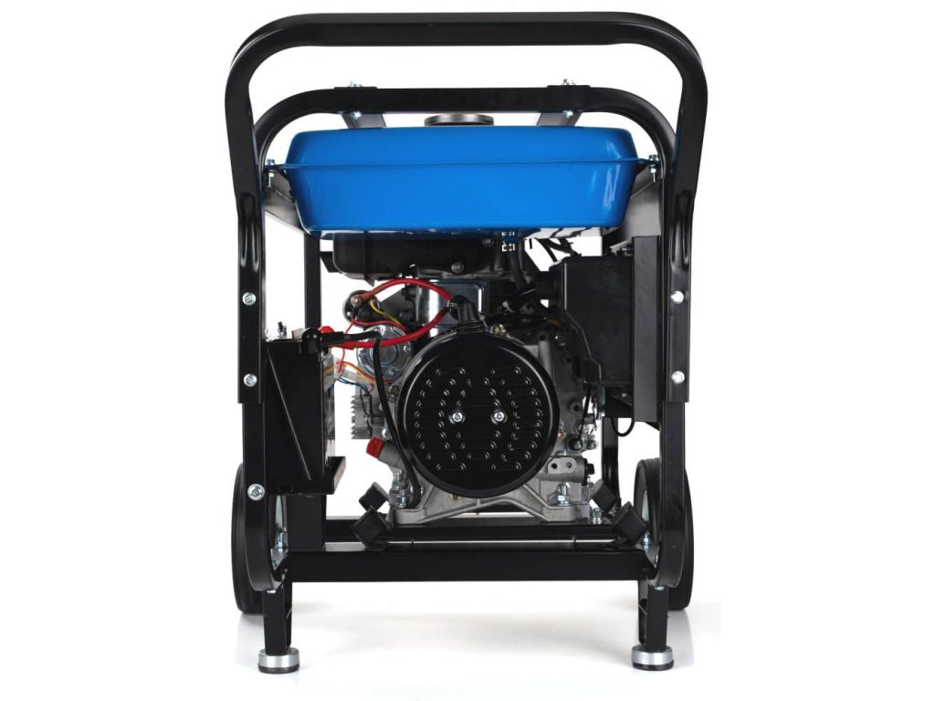Оснащен четырехтактным одноцилиндровым двигателем мощностью 7,4 кВт. Благодаря медной обмотке альтернатора и автоматическому регулятору напряжения подает электроэнергию высокого качества, что позволяет подключать чувствительные приборы. Запуск генератора производится с помощью электростартера, а декомпрессионный клапан обеспечивает эффективную работу в любых условиях. Корпус открытого типа имеет жесткую стальную раму и 2 колеса для перемещения.