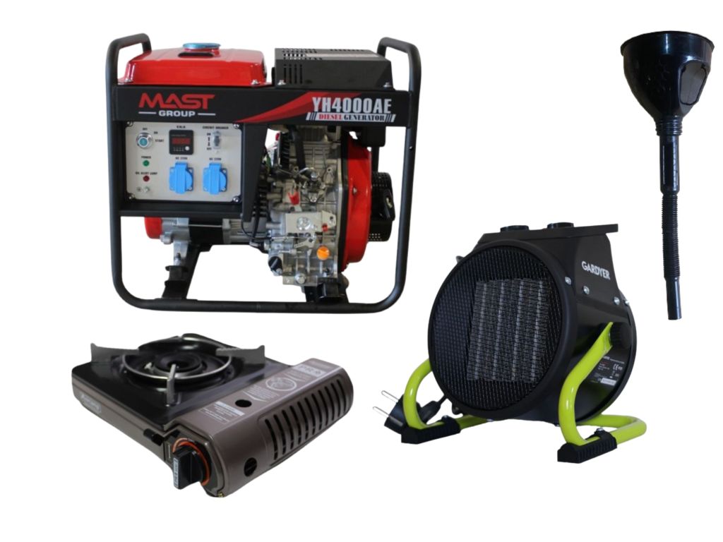Преимущества комплекта дизельный генератор MAST GROUP YH4000AE + газовая плитка Orcamp CK-505 + электрический обогреватель Gardyer HE2000