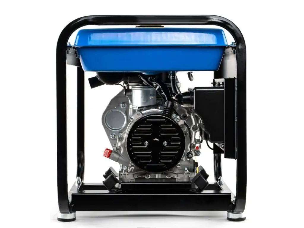 Благодаря наличию стабилизатора напряжения (AVR) и медной обмотке альтернатора, генератор безопасен для чувствительной техники. Для контроля выходного напряжения есть вольтметр, а для отслеживания технического состояния устройства – датчики уровня масла и топлива. Открытая рамная конструкция предотвращает перегрев и упрощает обслуживание, а компактные габариты делают этот генератор для частного дома 230 В удобным и мобильным.