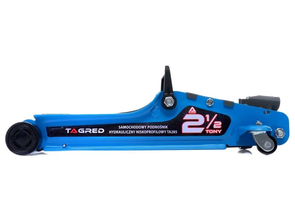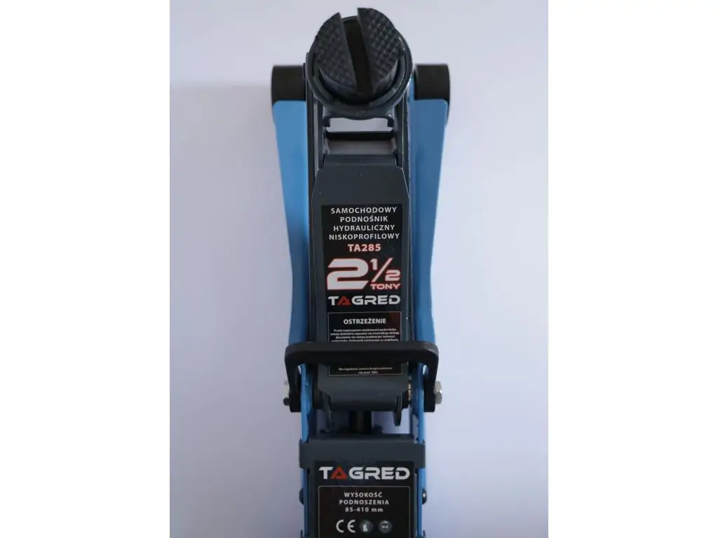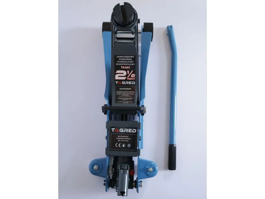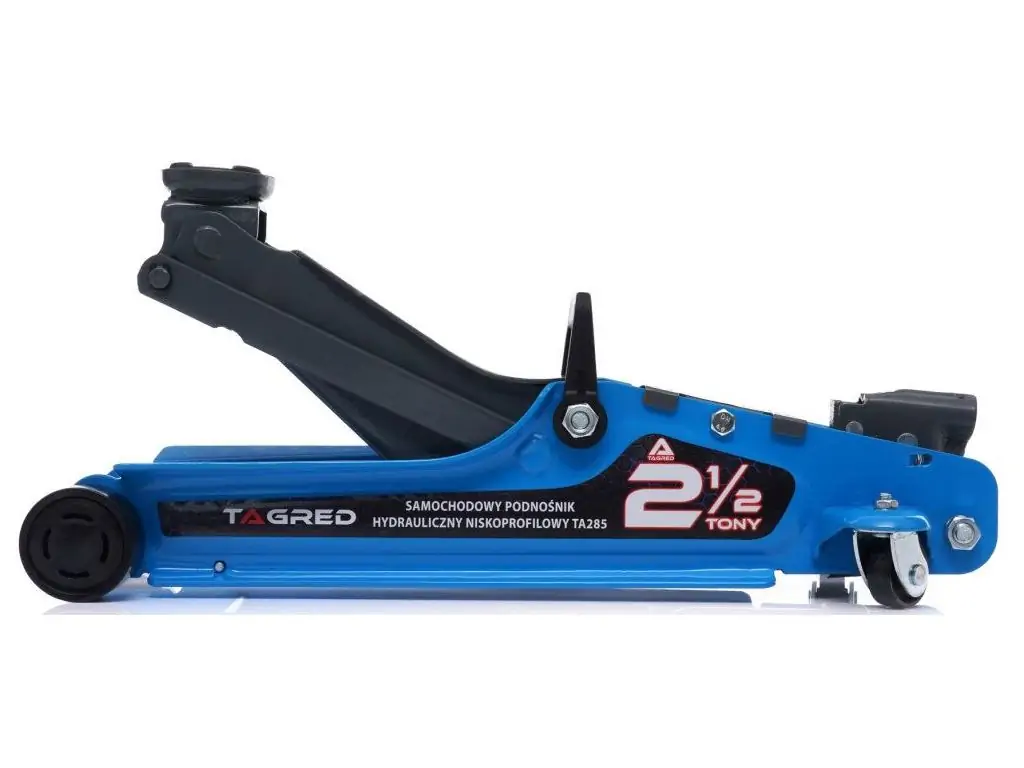 Гидравлический домкрат TAGRED TA285 с грузоподъемностью 2,5 тонны и высотой подхвата 85 мм (без резиновой накладки) позволяет обслуживать подавляющее большинство легковых автомобилей, в том числе авто с низким клиренсом. Прочная, жесткая конструкция из прокатных стальных листов, соединенных в специальные профили, гарантирует надежность и безотказность устройства. Гидравлический цилиндр обеспечивает плавные и контролируемые подъем-опускание.