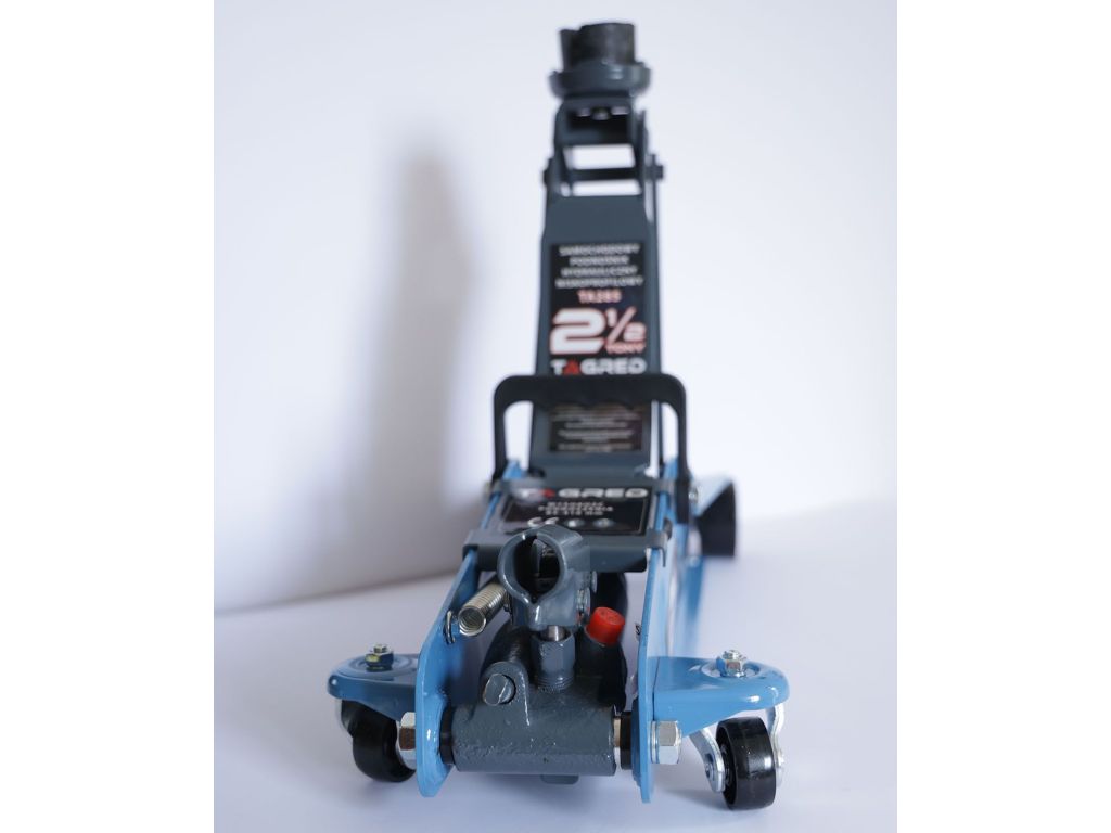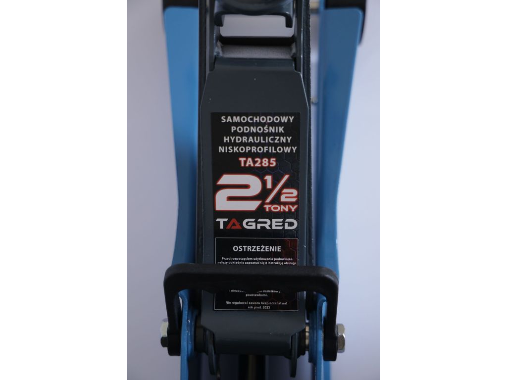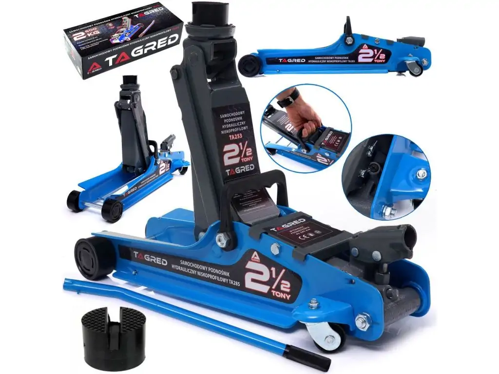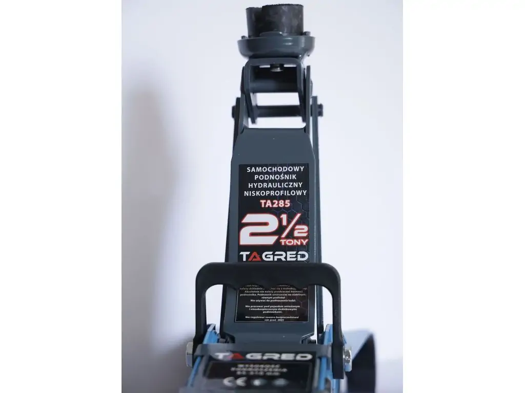 Гидравлический домкрат TAGRED TA285 с грузоподъемностью 2,5 тонны и высотой подхвата 85 мм (без резиновой накладки) позволяет обслуживать подавляющее большинство легковых автомобилей, в том числе авто с низким клиренсом. Прочная, жесткая конструкция из прокатных стальных листов, соединенных в специальные профили, гарантирует надежность и безотказность устройства. Гидравлический цилиндр обеспечивает плавные и контролируемые подъем-опускание.
