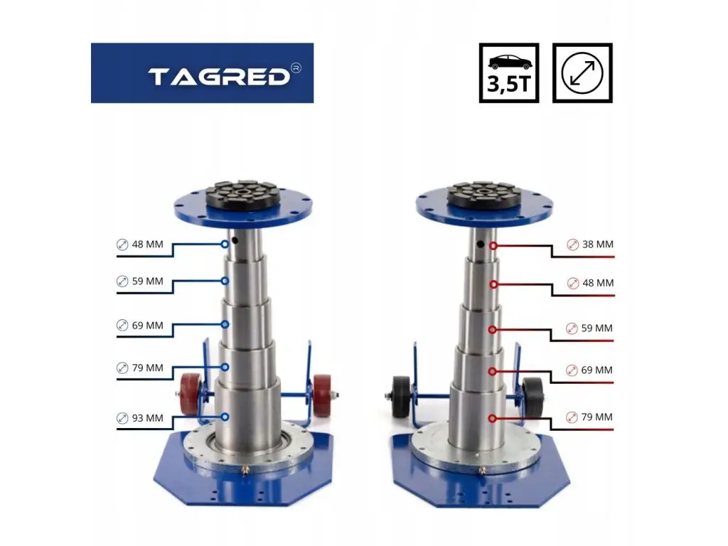 Пневматический подъемник TAGRED TA256 с грузоподъемностью 3500 тонны и усиленной конструкцией с прочными поршнями может использоваться для всех типов легковых автомобилей, микроавтобусов и легкого коммерческого транспорта. Внутренняя телескопическая стойка обеспечивает стойкость подъемника даже при максимальной нагрузке. Высота подхвата составляет 135 мм, максимальная высота подъема – 400 мм. Рабочее давление – 5-10 Бар.