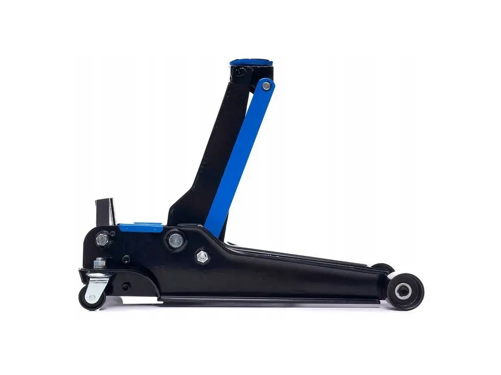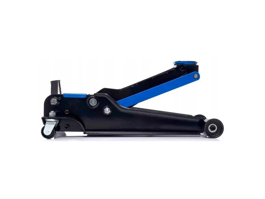 - Поворотные колеса на подшипниках позволяют легко маневрировать домкратом под автомобилем.