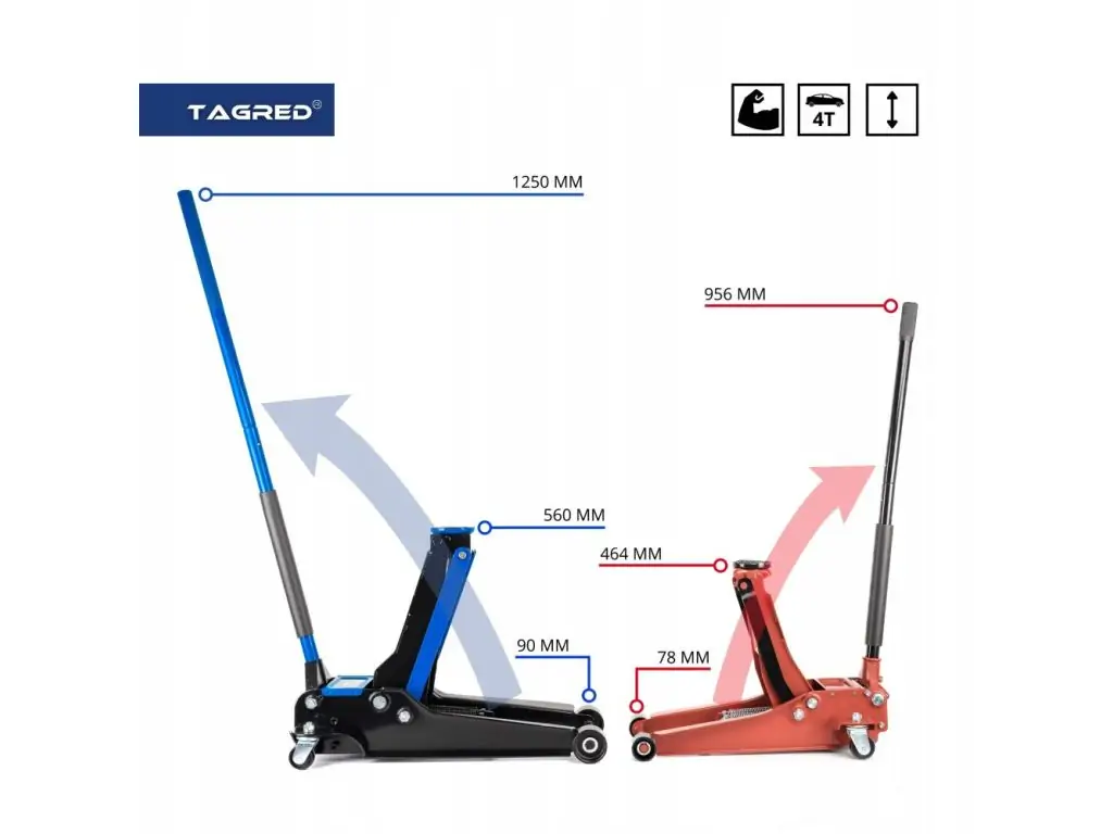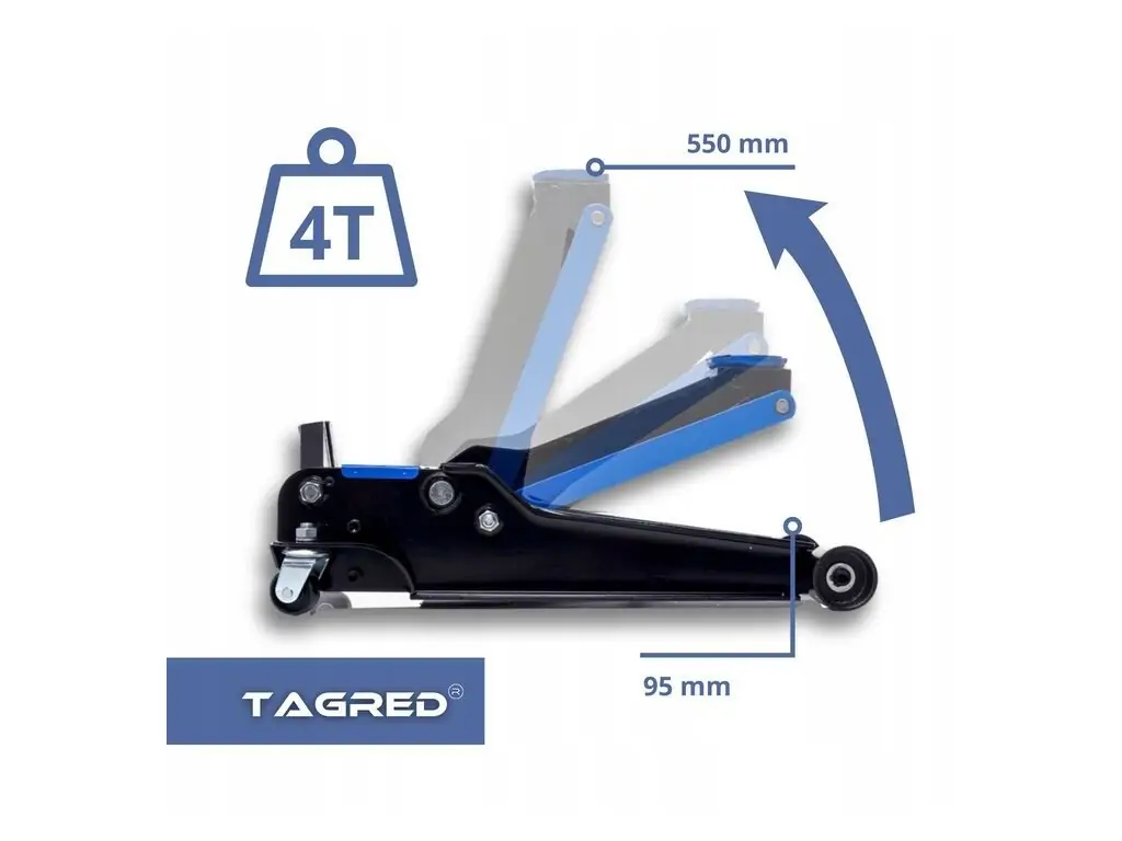 - Изготовленный из высококачественной и толстой стали домкрат TAGRED является символом надежности и безопасности.