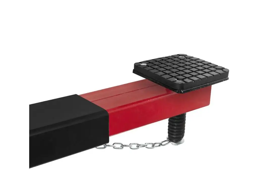 Поперечная балка обеспечивает стабильность автомобиля и самого домкрата. Прорезиненные подъемные опоры предотвращают скольжение и повреждение несущих элементов автомобиля, а специальные цепи надежно фиксируют груз на платформе. За счет чрезвычайно прочной конструкции такая траверса на домкрат будет надежно служить долгое время.