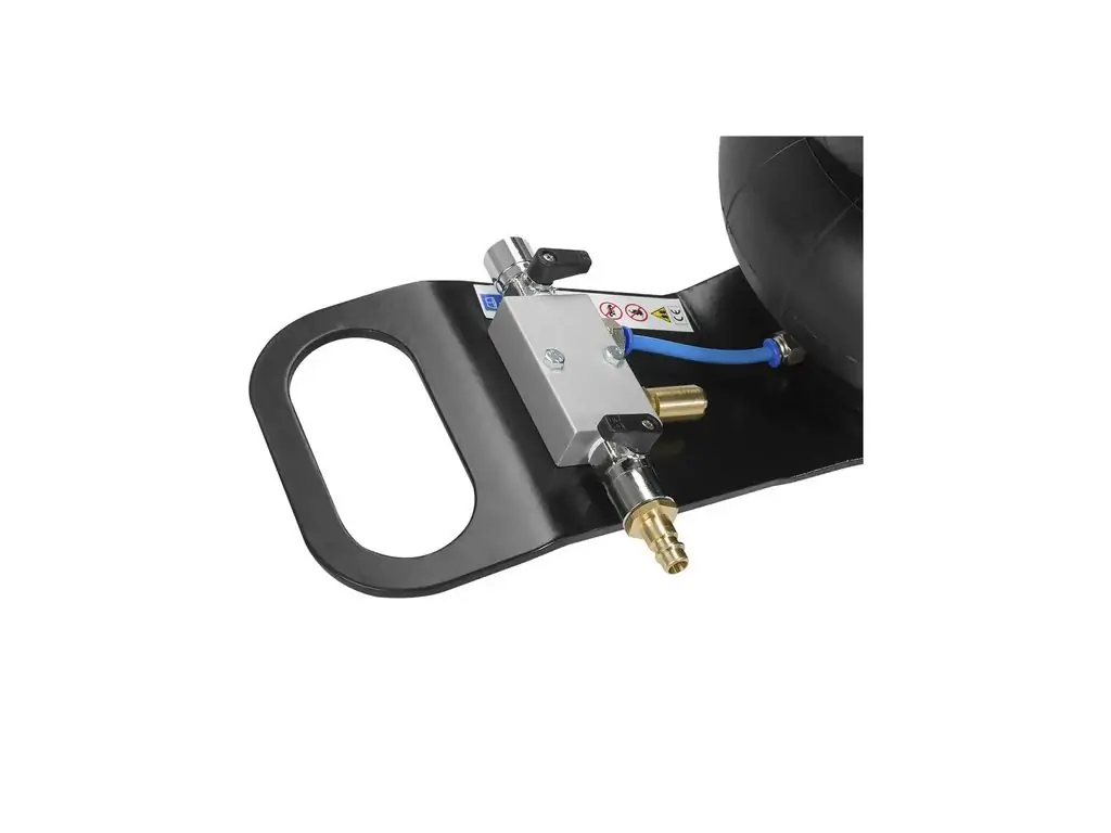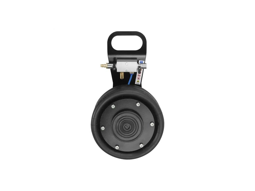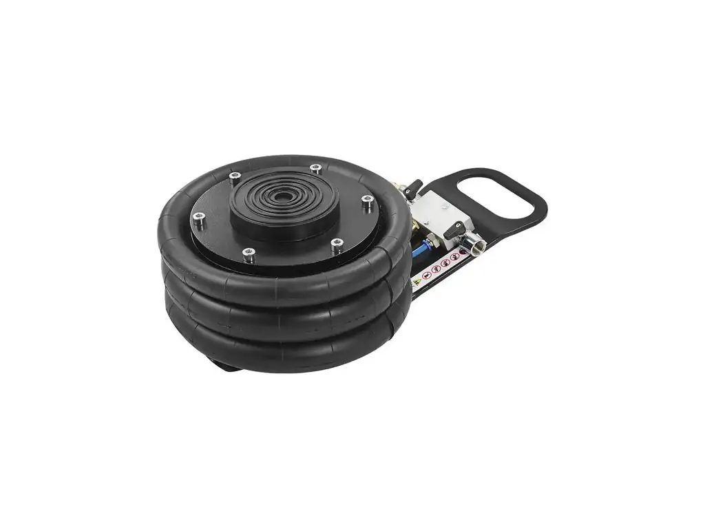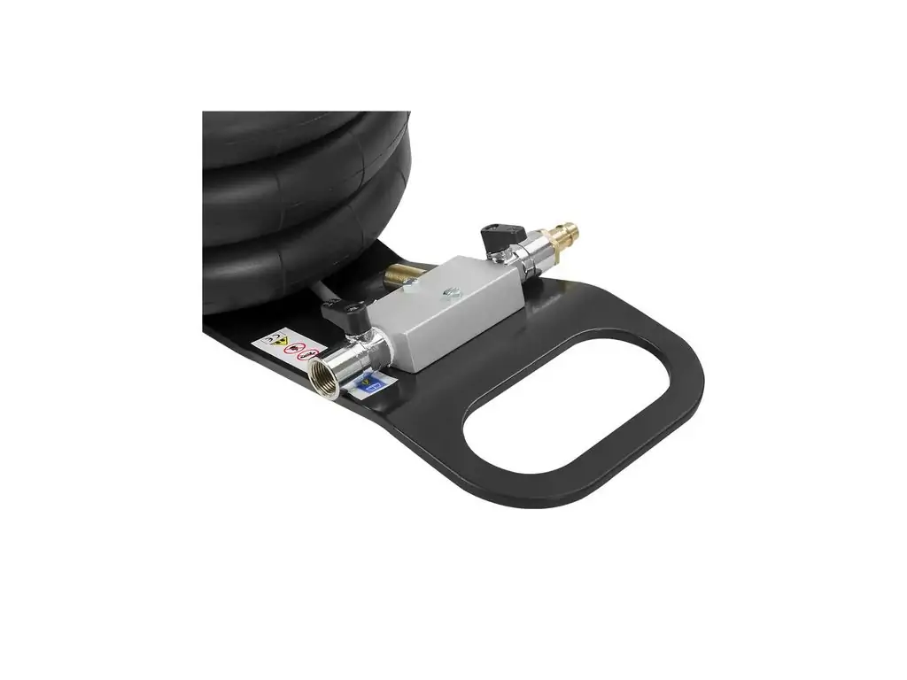 Рабочее давление подъемника – 6-10 Бар. Для безопасности эксплуатации есть предохранительный клапан, срабатывающий при превышении допустимого давления. Пневмоподушка изготовлена из прочной армированной резины и имеет диаметр 260 мм. Основание из стали с антикоррозионным покрытием устойчиво к износу и скручиванию. 2 прочных колеса и вес всего 20 кг позволяют легко перемещать этот пневматический домкрат для автомобиля по рабочей зоне.